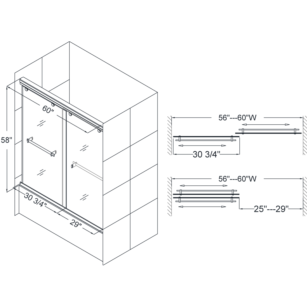 Charisma Tub Door: 56 - 60" W x 58" H
